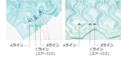 低空気噴射(エアーロス)システムは、高リスク患者での使用に適し、 交代浮揚システムと 低空気噴射(エアーロス)は優れた通気性を提供し、 皮膚俗そうを原因となりえる湿気を減らし優れた俗そう予防マットレスとして使用可能です。