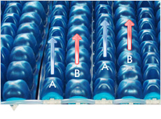 각각의 연결된 공기방은 A · B 라인으로 순환을 이루어 환자의 압력경감을 강화합니다. |