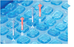 각각의 연결된 공기방은 A · B라인으로 순환을 이루어 환자의 압력경감을 강화합니다. |
