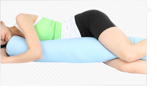 바르게 누운 경우 양 무릎 사이에 끼워 다리를 세워 자세를 유지합니다. |