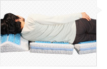 머리,어깨,목을 동시에 받치는 경우 삼각 쿠션 소(小) 2개와 삼각쿠션 대(大)를 어깨와 머리 목 사이에 겹쳐서 사용한다. |