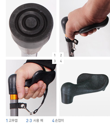 평지에서는 지팡이 고무캡이 지면에 접지 되어 있는지 확인 후 사용 하십시오.