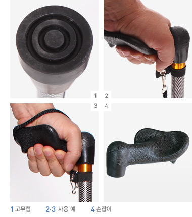 평지에서는 지팡이 고무캡이 지면에 접지 되어 있는지 확인 후 사용 하십시오.