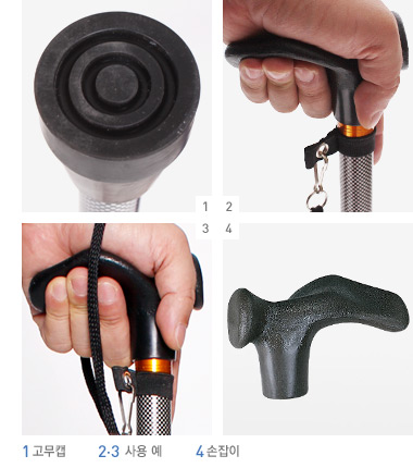 평지에서는 지팡이 고무캡이 지면에 접지 되어 있는지 확인 후 사용 하십시오.