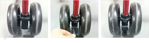앞바퀴에 방향조절 고정레버가 있어 주변 환경에 따라 사용하실 수 있습니다.