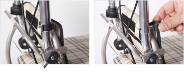 앞바퀴에 방향조절 고정레버가 있어 주변 환경에 따라 사용하실 수 있습니다.