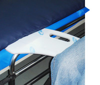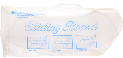 슬라이딩보드의 한 모서리를 대퇴부 아래에 넣고 이동하려는 침대, 휠체어 또는 차량으로 반대쪽 모서리를 놓고 바꾸고자 하는 쪽으로 몸을 움직이며 이동합니다.
