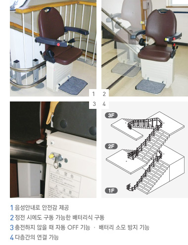 3층 · 4층에도 한 대로 사용할 수 있는 다층계단용 모델입니다.
