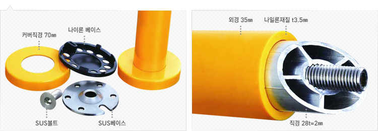 안전손잡이에 쓰인 금속은 알루미늄(두께2㎜/방사형 파이프)과 스테인레이스(두께3㎜)로 견고성과 안전성을 함께 제공합니다.