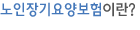 고령이나 노인성 질병 등 탓에 일상생활을 혼자 수행하기 어려운 노인 등에게 신체활동 또는 가사지원 등의 장기요양급여를 제공하여 노후의 건강증진 및 생활안정을 도모하고 그 가족의 부담을 덜어줌으로써 국민의 삶의 질을 향상하도록 함을 목적으로 시행하는 사회보험제도