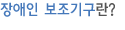 장애인 보조기구란 장애인이 장애의 예방,보완과 기능 향상을 위하여 사용하는 의지, 보조기 및 그 밖에 보건복지부장관이 정하는 보장구와 일상생활의 편의 증진을 위하여 사용하는 생활용품